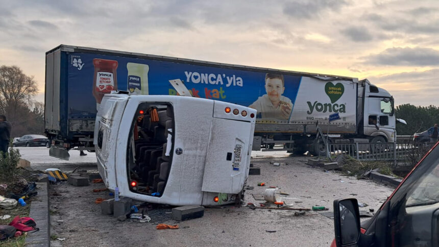 Balıkesir’de tırla çarpışan okul servisi devrildi. 26 kişi yaralandı. Yaralılar arasında 8 öğrencinin durumu ağır.